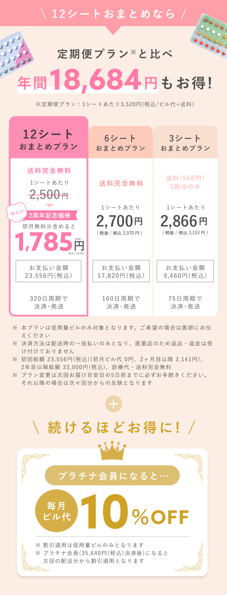 ※ 46歳〜49歳の方であっても現在ピルを継続して服用されていれば処方可能な場合がございます。こちらよりご連絡ください